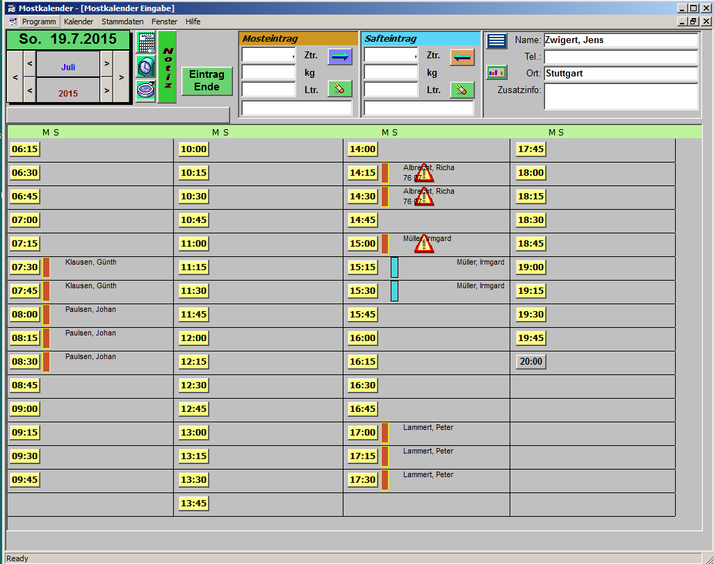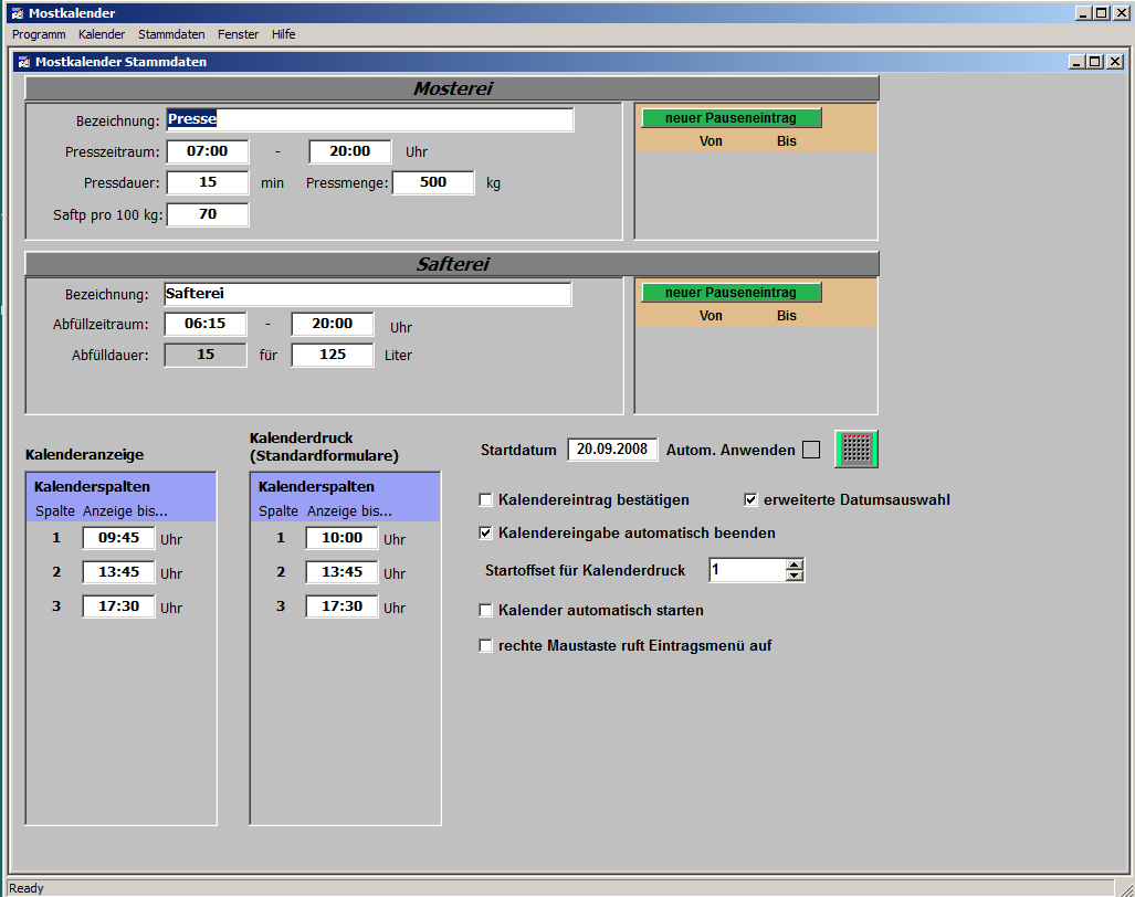 Der Mostkalender ist ein sehr komfortables und einfach zu bedienendes Programm zur Verwaltung von Mostereiterminen.